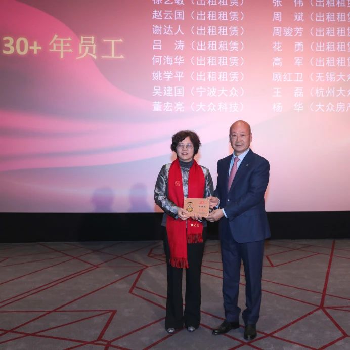 杨国平董事长向袁丽敏等服务超30年的员工代表颁发纪念章